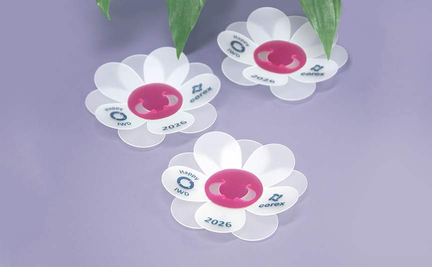 To mark the occasion, the Corex design and production teams created something special: small flower-shaped lapel pins made from Promeg® polypropylene sheet, proudly manufactured in Australia.