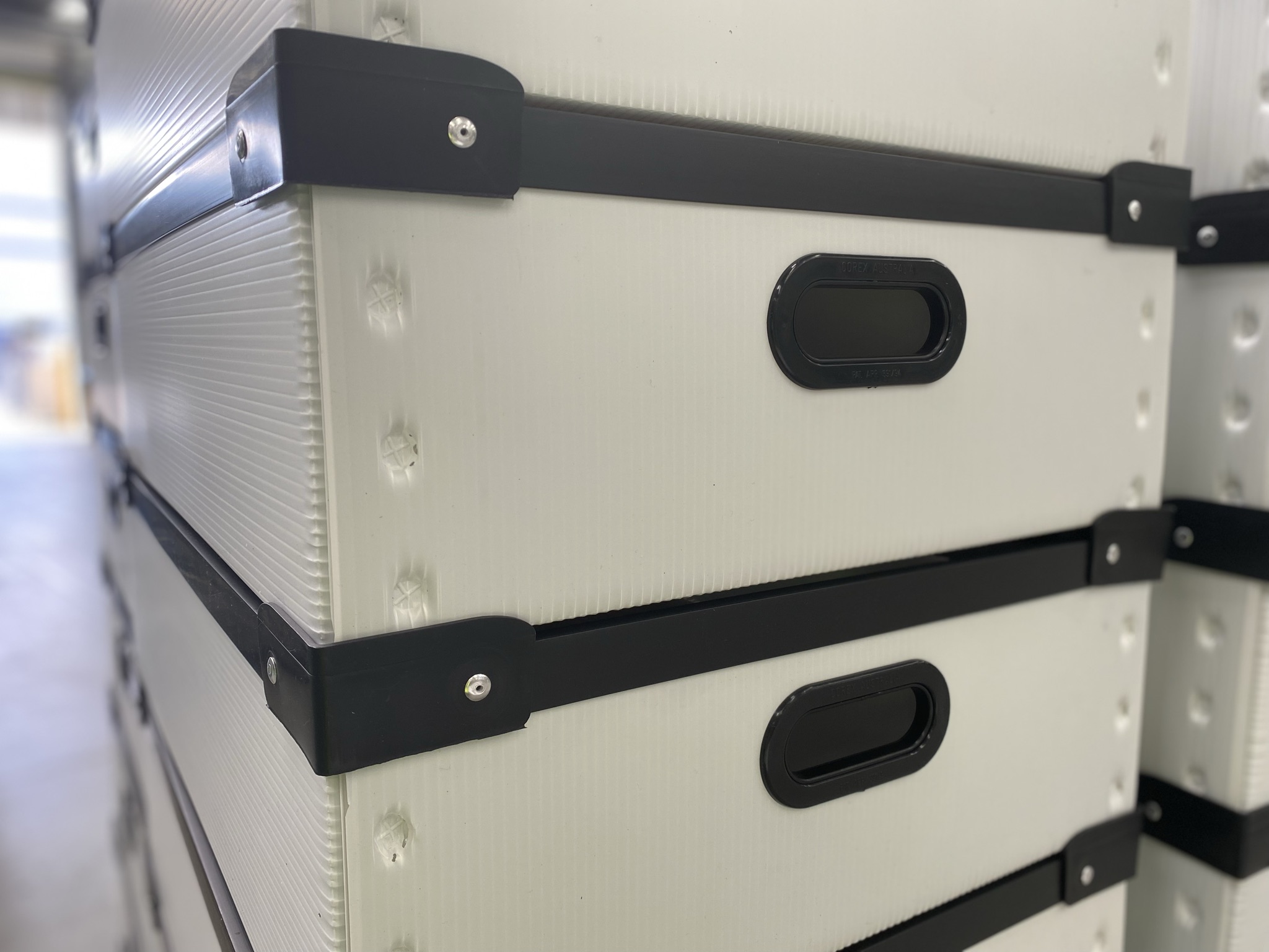 Assembled Corflute® boxes and containers are custom designed for applications that need a robust, permanent solution. Our super-strong rigid boxes can be used again and again. They are a wonderful sustainable alternative to single use materials like cardboard.