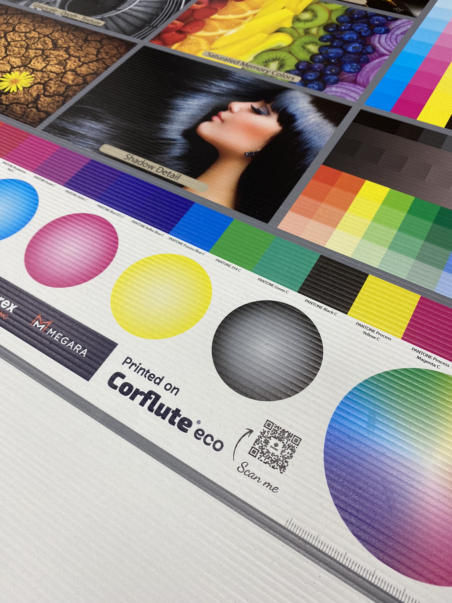 This is a sustainable version of our graphic Corflute sheet. It is composed of 50% recycled content (mix of post-consumer, post-industrial) and 50% virgin materials to strike the ultimate balance between “Eco” and “Performance” for our printing customers.