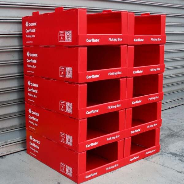 Waterproof Corflute® picking boxes are designed for storage, picking, and warehousing of materials.