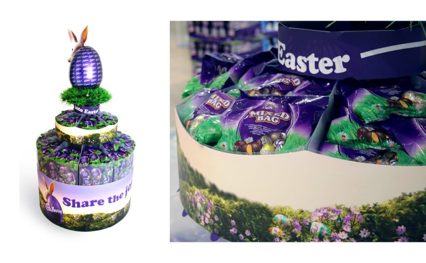 Designed to stop shoppers in their tracks, this 360-degree shoppable free-standing display unit brings Easter to life at scale. Its bold circular footprint and tiered structure create a strong in-store presence, maximising visibility from every angle.